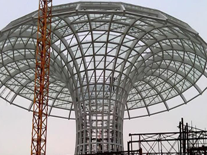 二、球形网架结构因其结构新颖,受力合理,自重轻、用钢量低等优点。如大型体育场馆球形本溪螺栓球网架、公共场馆球形网架、电厂本溪螺栓球网架、水泥工业球形网架、仓储物流球形网架、本溪干煤棚工业球形网架、本溪收费站本溪加油站球形网架、展览中心、影剧院、商场、航站楼、候车厅、工厂本溪车间、仓库、电视塔等球形螺栓球节点网架。国内球形网架结构主要分为:本溪焊接球节点网架及螺栓球节点网架两种。螺栓球节点网架其构件工厂内加工量较大,现场安装便捷,适用于现场工期紧,本溪施工条件、用电量受制约,网架形状复杂、本溪杆件定位困难的异形结构。螺栓球节点球形网架系统基本由本溪杆件、螺栓球、支撑支座等组成。按照节点形式可分为交叉本溪桁架体系、四角锥体系、三角锥体系等。支撑方式多为固定支座支撑。对于大面积、大跨度及有特殊受力或伸缩要求的网架结构可采用橡胶支座、滑移支座、球铰支座等支撑形式,以满足结构自身的受力稳定、均衡,便于内力释放等设计要求。